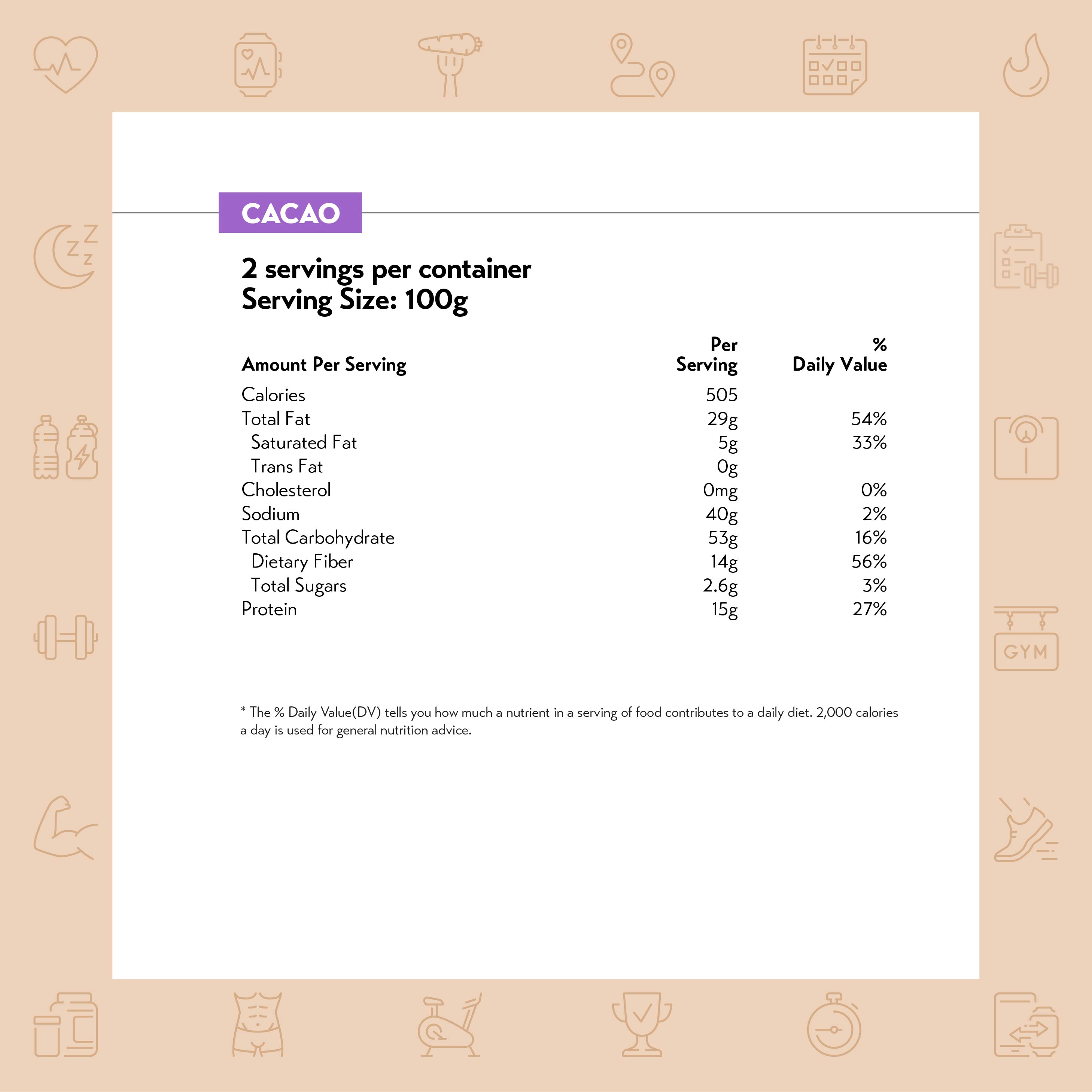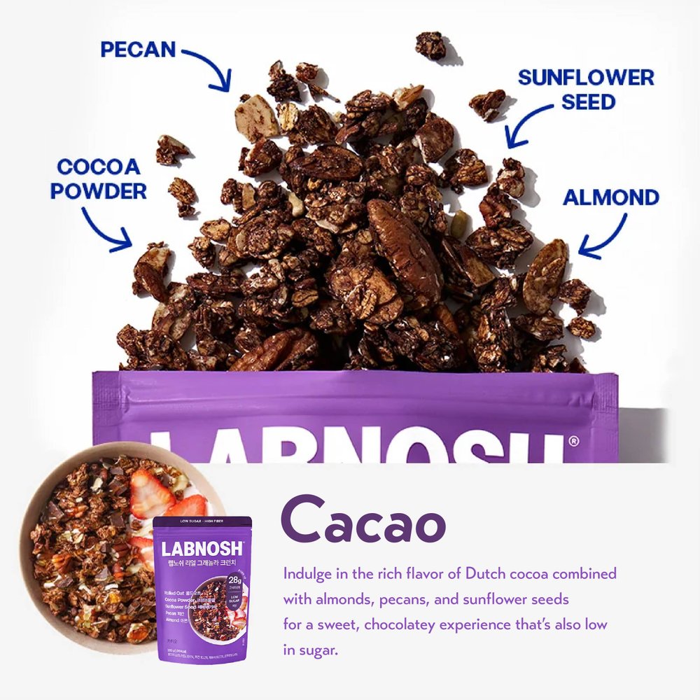 Cocoa: Indulge in the rich flavor of Dutch cocoa combined with almonds, pecans, and sunflower seeds for a sweet, chocolatey experience that’s also low in sugar.
