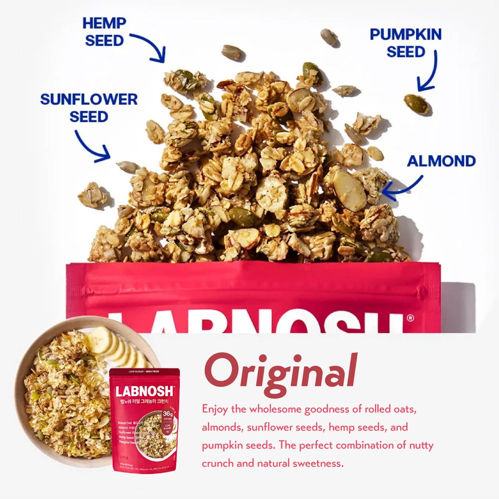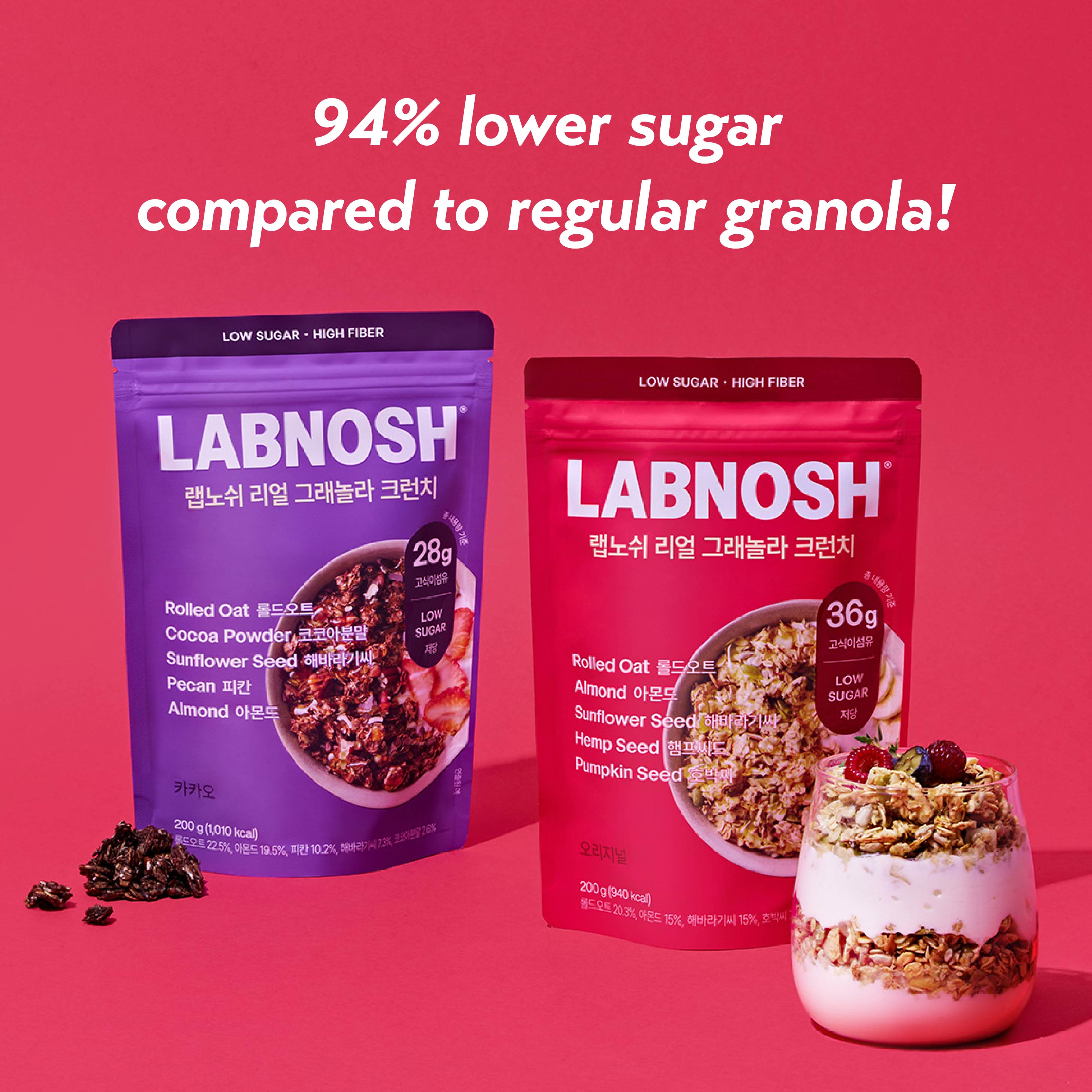 It is a delicious and nutritious low sugar granola that’s packed with high fiber for a satisfying and healthy snack. Whether you're searching for a wholesome breakfast granola or a tasty low sugar snack, this granola delivers the perfect balance of sweetness and crunch. Made with a blend of wholesome rolled oats, nuts, and seeds, LABNOSH granola is the ideal choice for anyone looking to maintain a balanced diet without sacrificing flavor. With up to 94% less sugar than regular granola, it’s the perfect option for those seeking sugar-free granola or low glycemic granola alternatives. Enjoy this crunchy, fiber-rich snack anytime of the day and fuel your body with a healthier lifestyle