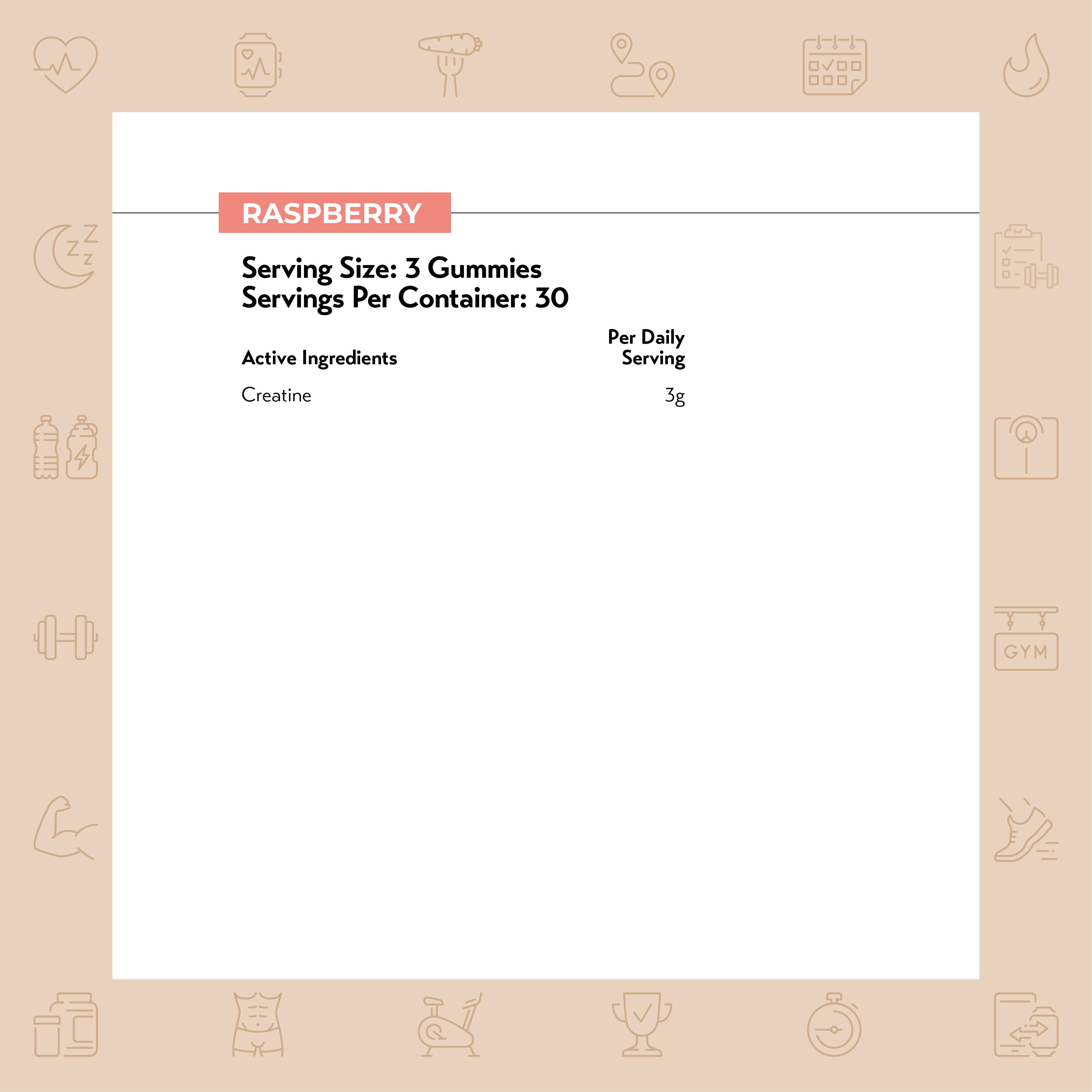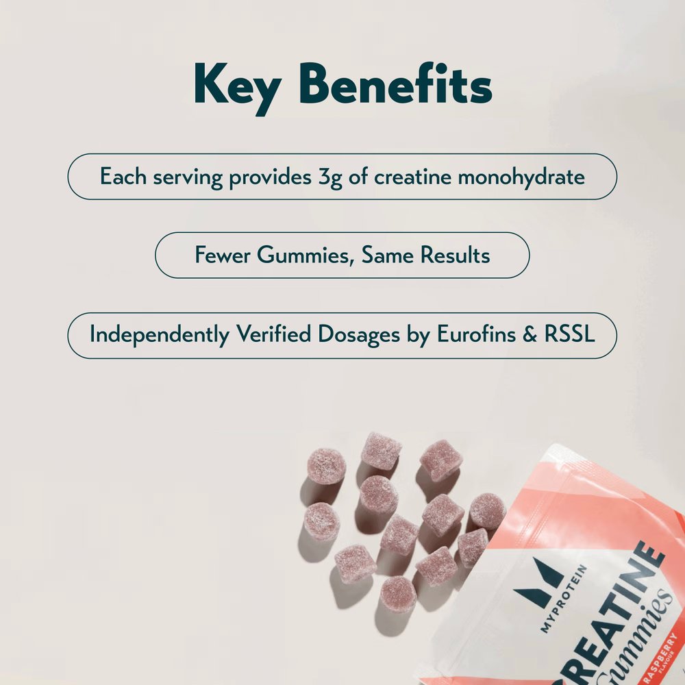 Raspberry: 1.31g creatine monohydrate per gummy