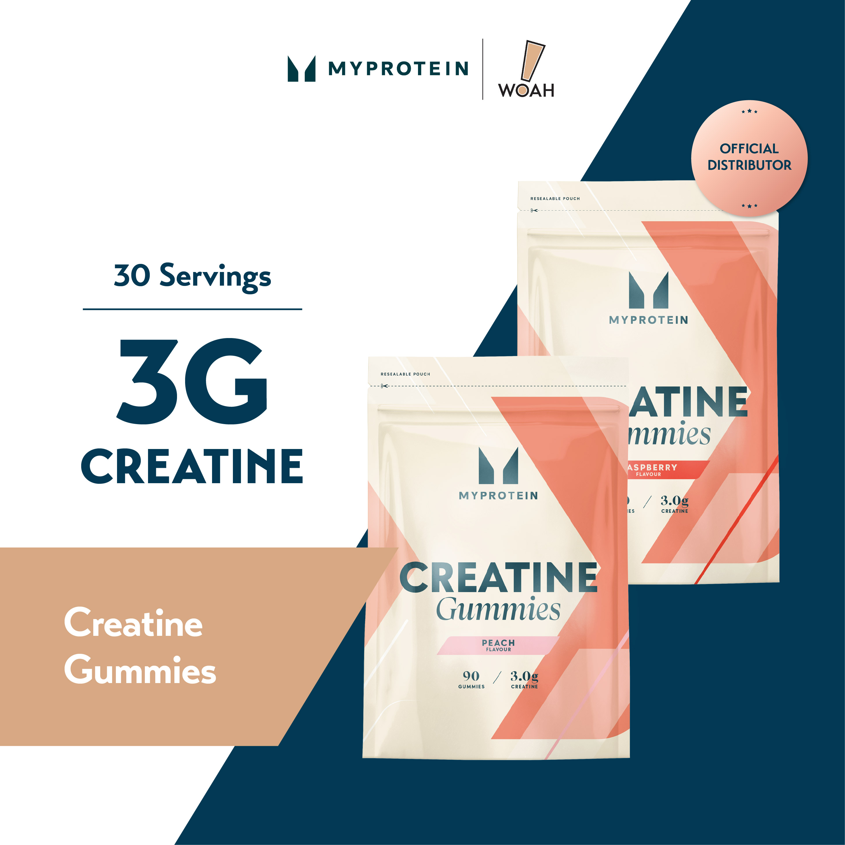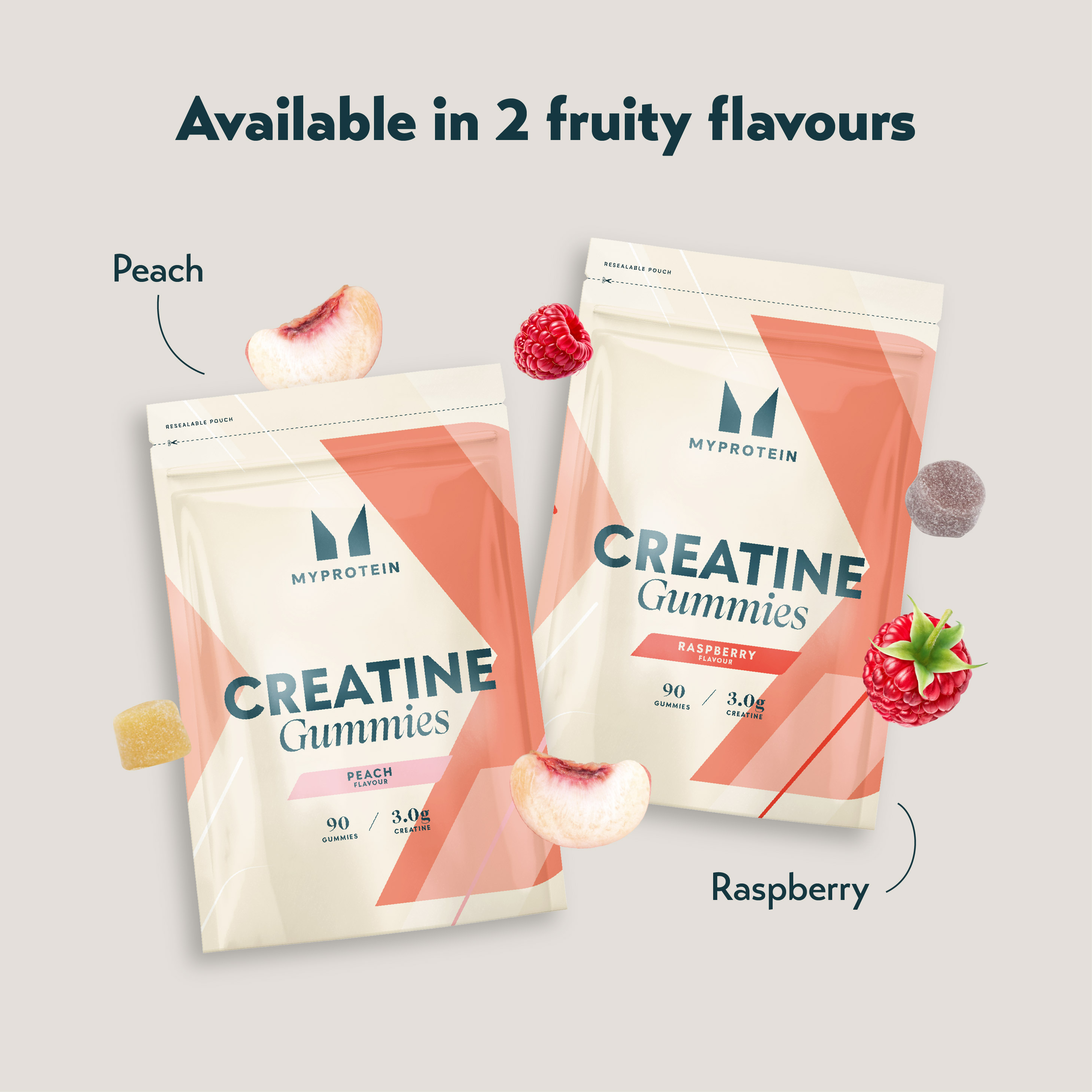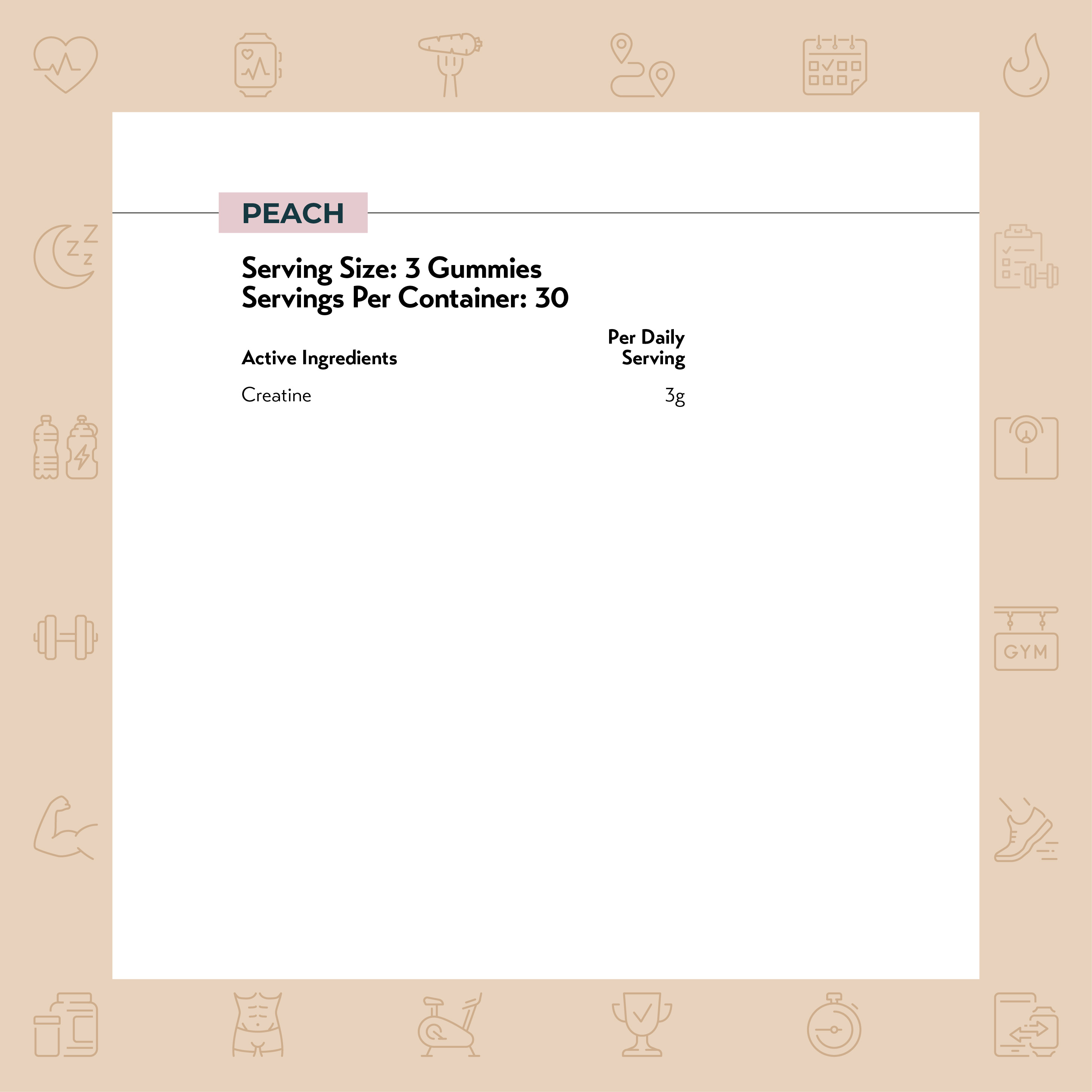 Peach: 1.3g creatine monohydrate per gummy