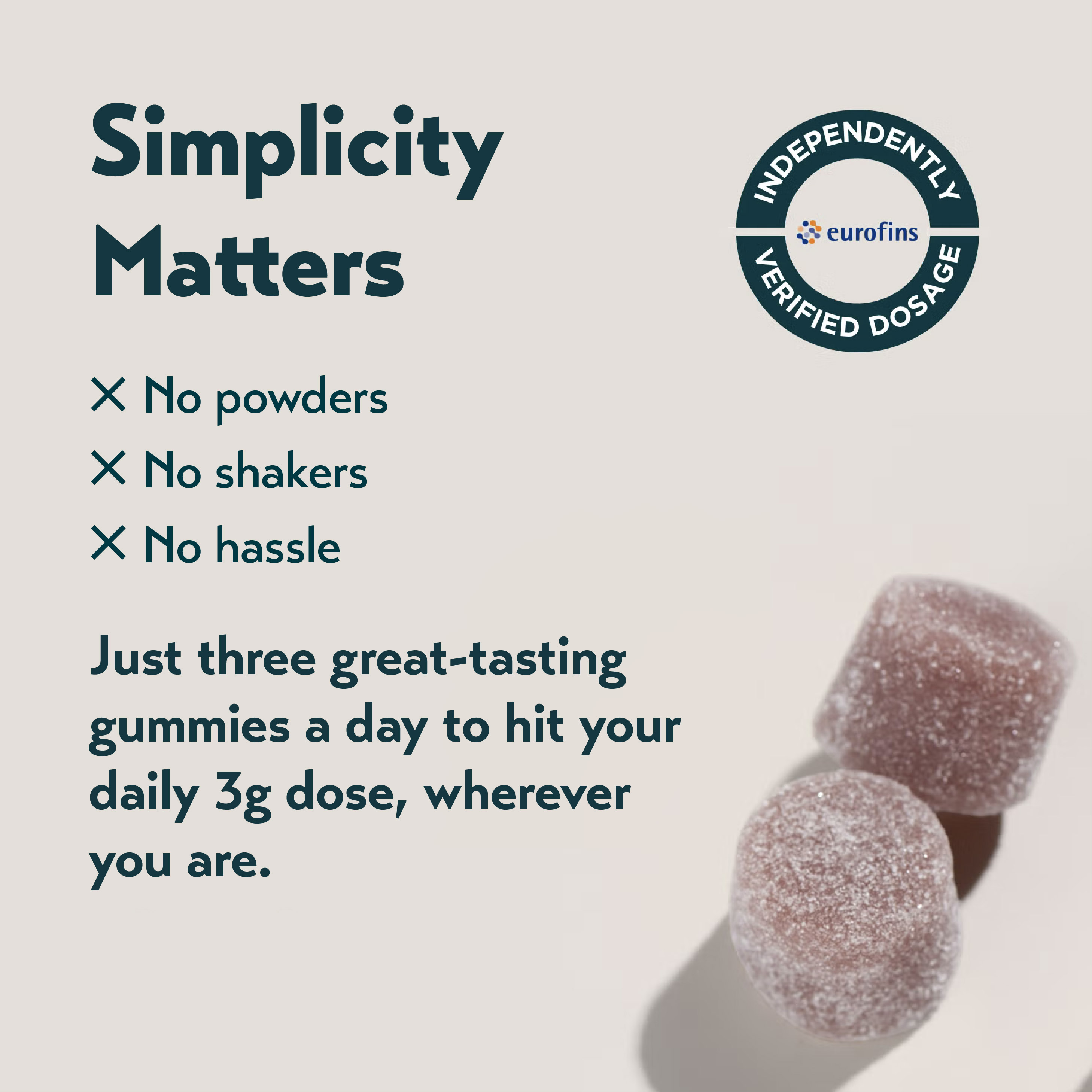 > Fewer gummies, same results — 1g per gummy means just 3 gummies a day to hit your goal.