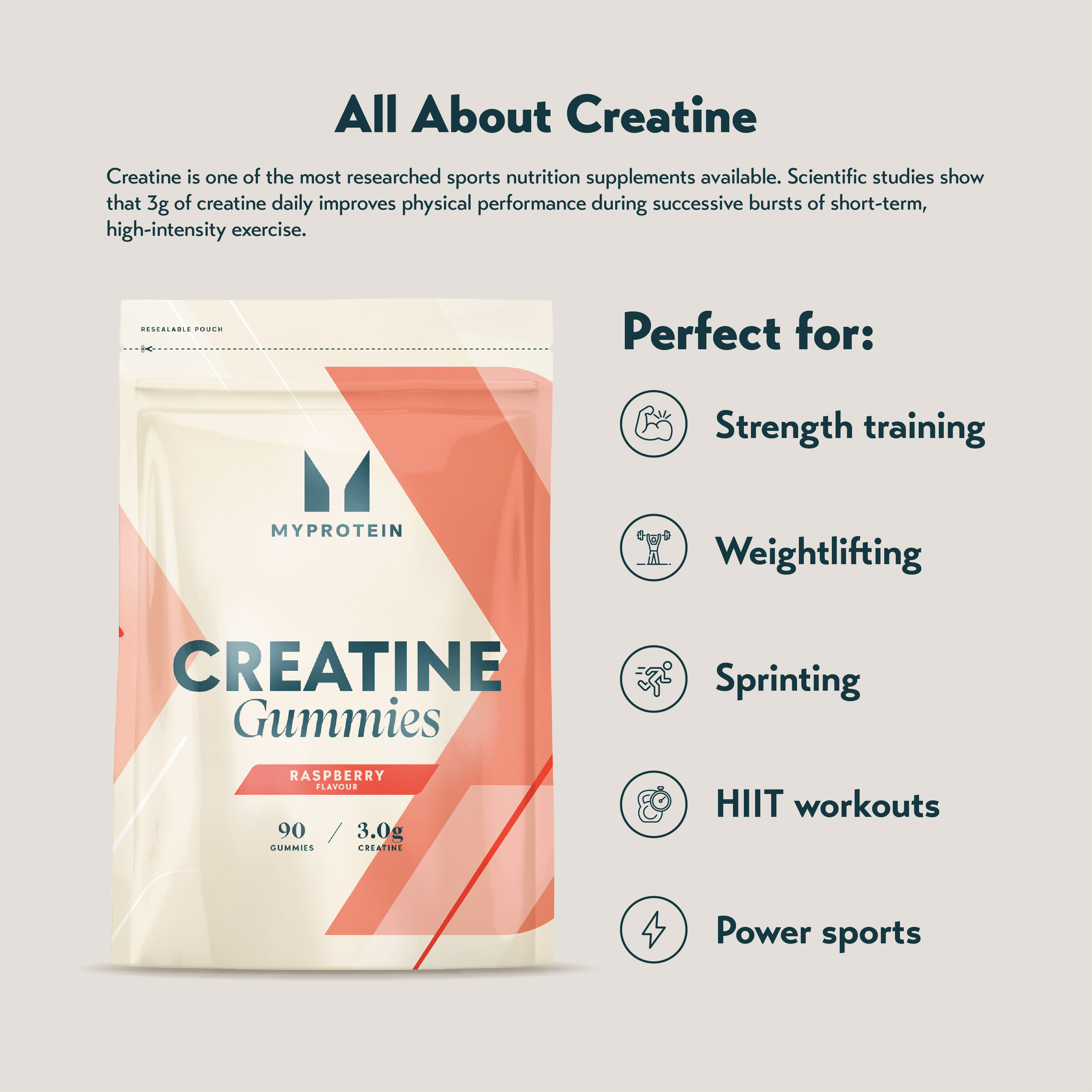 > 3g of pure creatine per serving — scientifically shown to improve performance during high-intensity bursts.