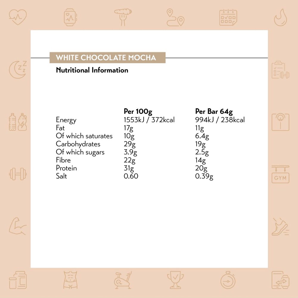 | Chocolate Chip Cookie Dough: Milk Chocolate with Sweetener (31%) (sweetener maltitols, cocoa butter, whole milk powder, cocoa mass, emulsifier lecithins (soya), vanilla extract), chocolate flavoured caramel layer with sweetener (16%) (sweetener maltitols, condense milk, cocoa butter, humectant sorbitols, ‘flavouring, emulsifier mono and diglycerides of fatty acids, colour plain caramel, natural flavoruing, salt), milk protein, soya crispies (8.6%) (soya protein, rice flour, barley malt extract, salt), collagen hydrolysate, humectant glycerol, soya protein, coconut fat, white chocolate with sweetener (1.6%) (sweetener maltitols, cocoa butter, whole milk podwer, emulsifier lecithins, vanilla extract), flavouring (milk) |