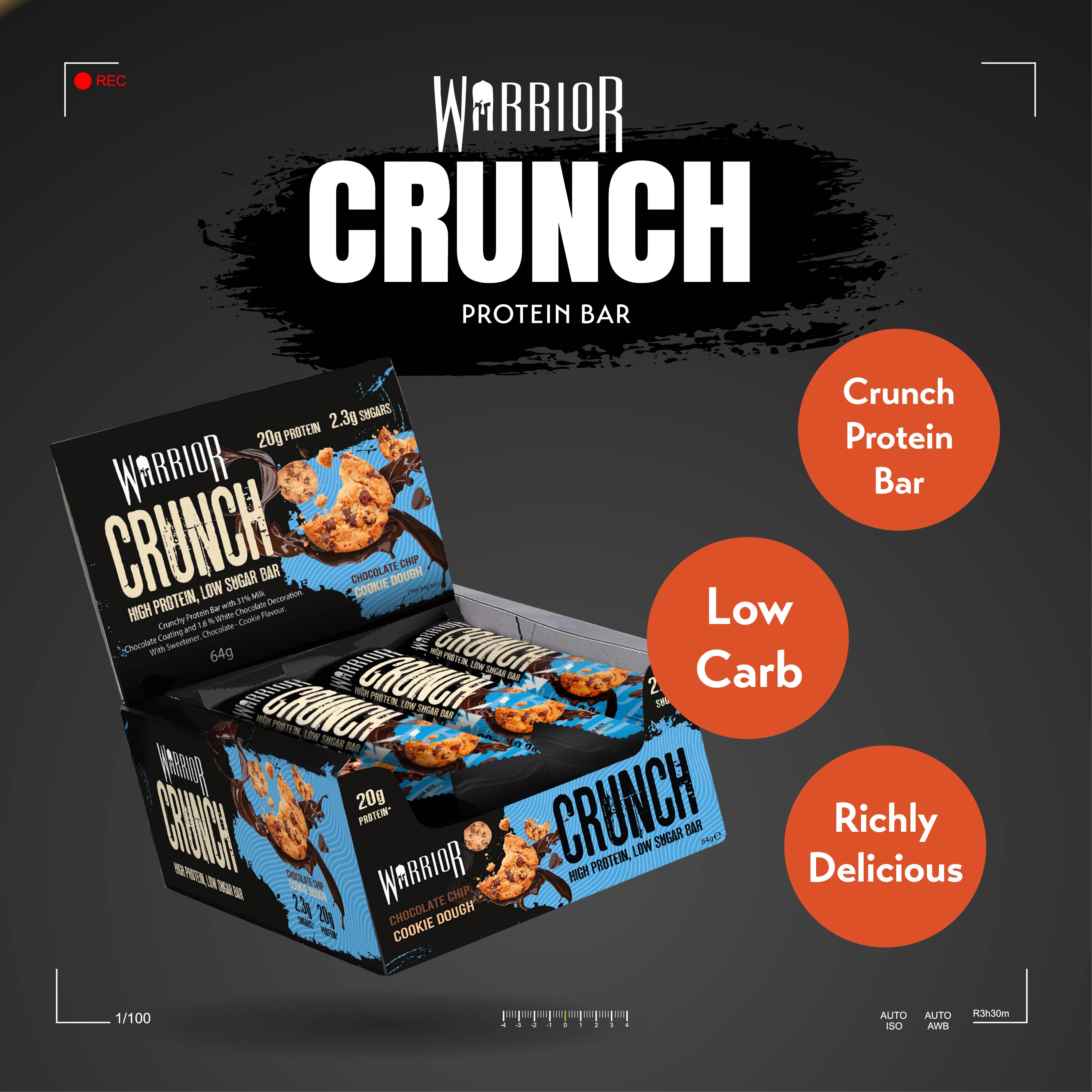 Warrior CRUNCH bars are possibly the tastiest low carb, high protein bar ever to hit the market! A richly delicious, multi-layered, crunchy low-carb, high protein bar that is perfect any time of day.